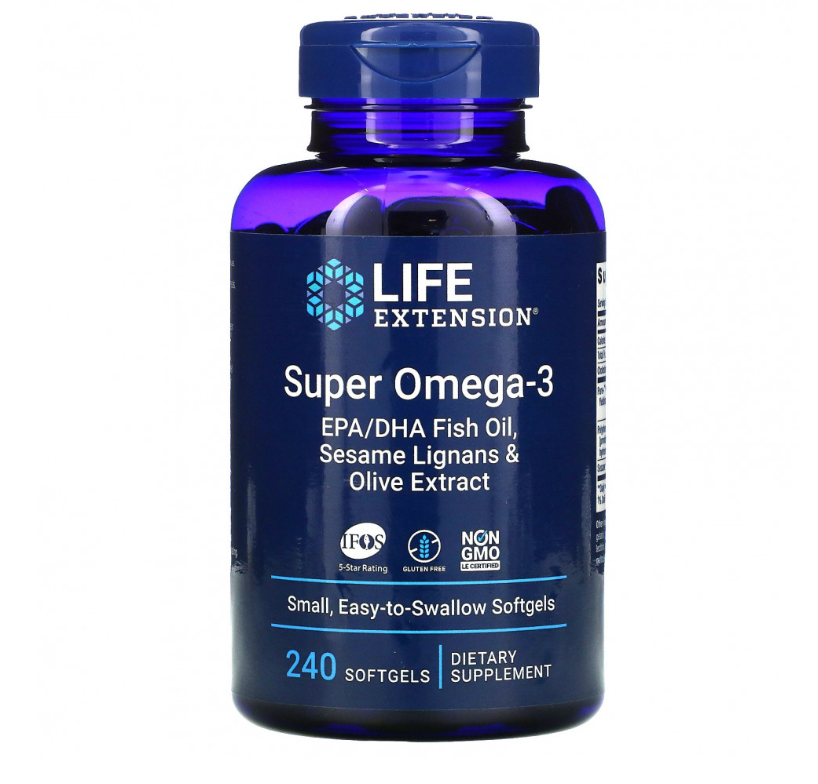Life Extension Super Omega-3 EPA/DHA Fish Oil 2000 mg c Sesame & Olive 240 таблеток